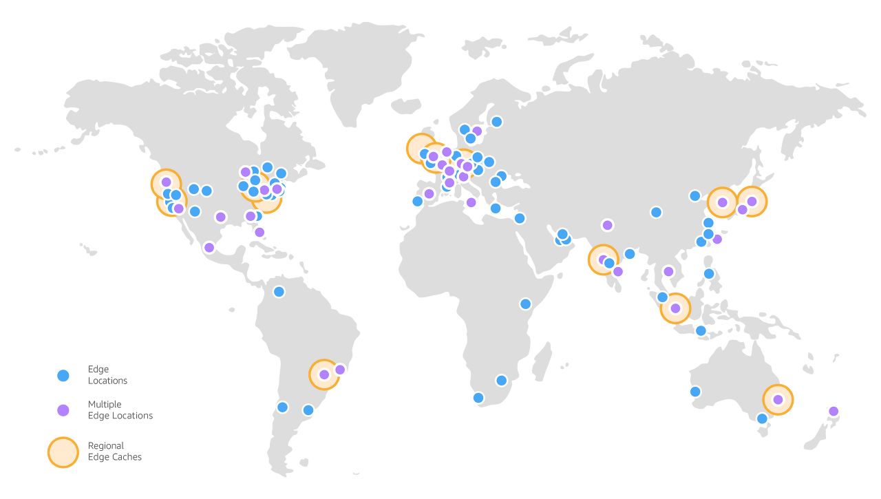 Edge Location은 특히 AWS의 CloudFront와 같은 CDN(Content Delivery Network) 서비스를 가장 빠른 속도로 제공(캐싱) 하기 위한 거점이다. 전 세계에 여러 장소에 흩어져 있다.