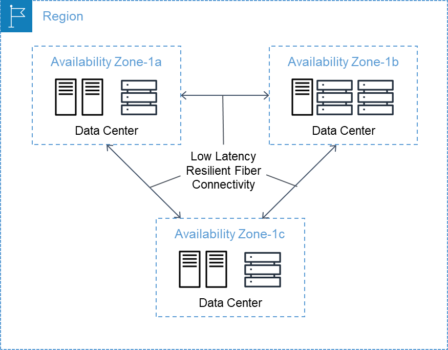 각각의 AZ들은 고속 프라이빗 네트워크(= Low Latency Resilient Fiber Connectivity)로 연결되어 있다.