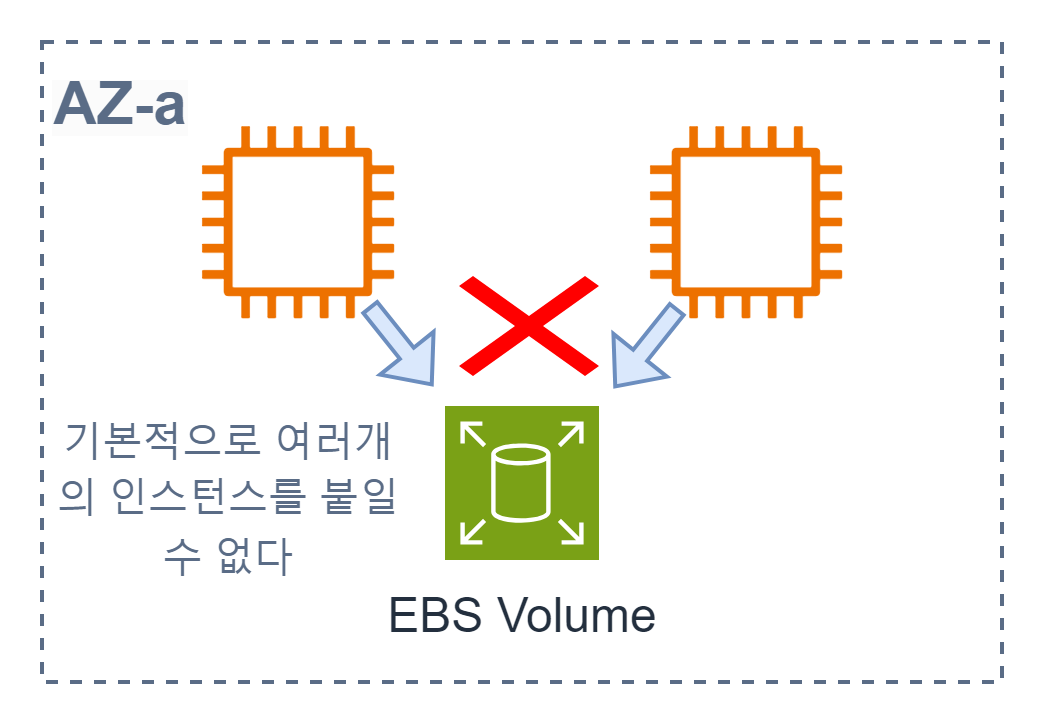 EBS 볼륨은 기본적으로 2개 이상의 인스턴스에서 동시에 접근할 수 없다.