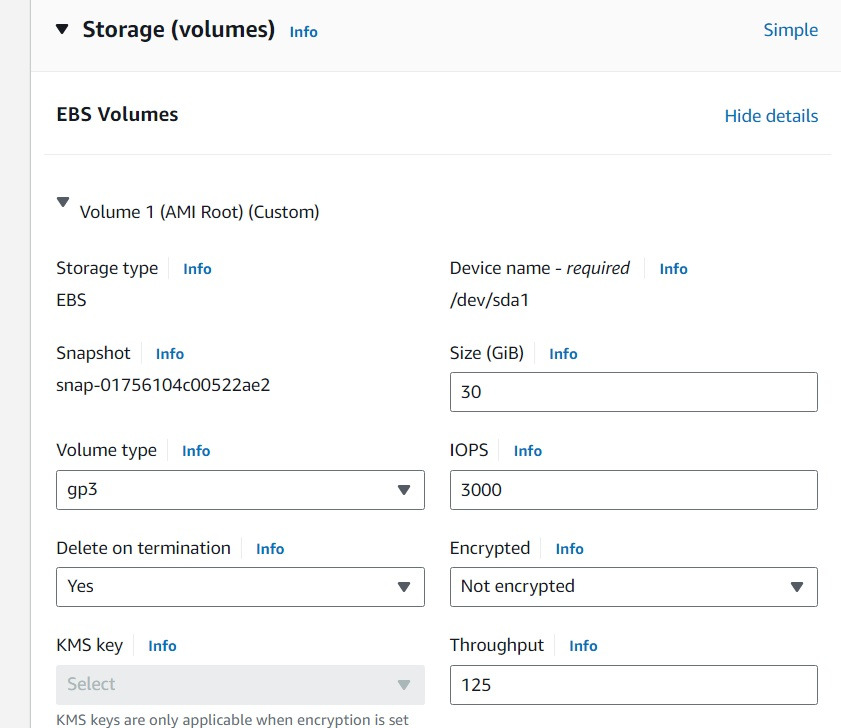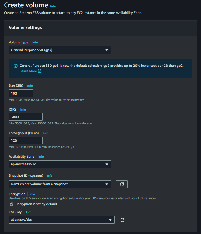 EBS를 만들기 위해서는 Volume 사이즈나 타입과 같은 Configuration을 설정해주어야 한다.