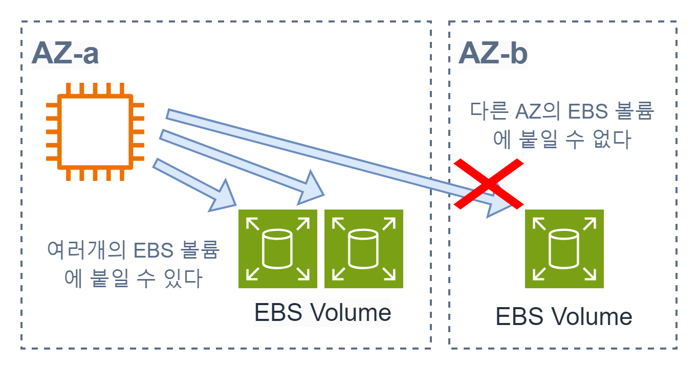 하지만 다른 AZ의 EBS 볼륨은 부착할 수 없다.