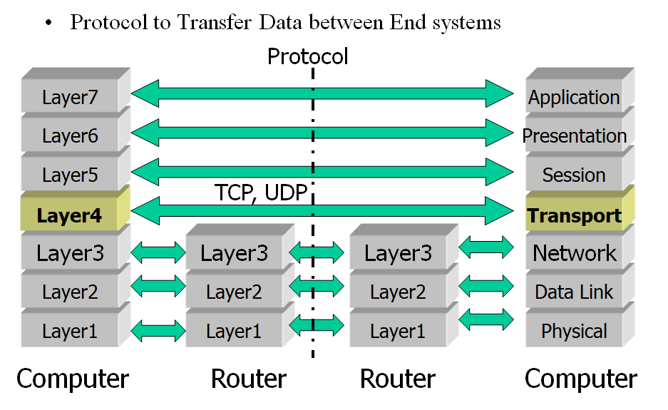 TCP(신뢰성 있는 통신)와 UDP(비연결형 통신)는 여기에 속한다.