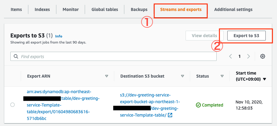 DynamoDB에 저장된 데이터를 S3 버킷에 이동시키고 싶을 경우, Export (내보내기) 기능을 사용하면 된다.