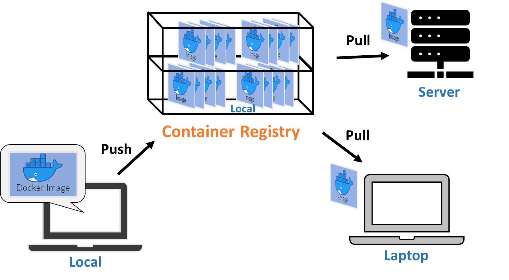 Container Registry라는 곳에 Push와 Pull을 통해 image를 주거나 받거나 한다.
