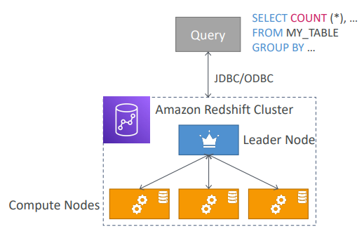 Leader Node의 명령을 처리하는 노드이다. 각 Compute Node는 CPU, 메모리, 스토리지를 탑재하고 있으며, 컴퓨트 노드 수를 늘림으로써 성능을 향상시킬 수 있다.