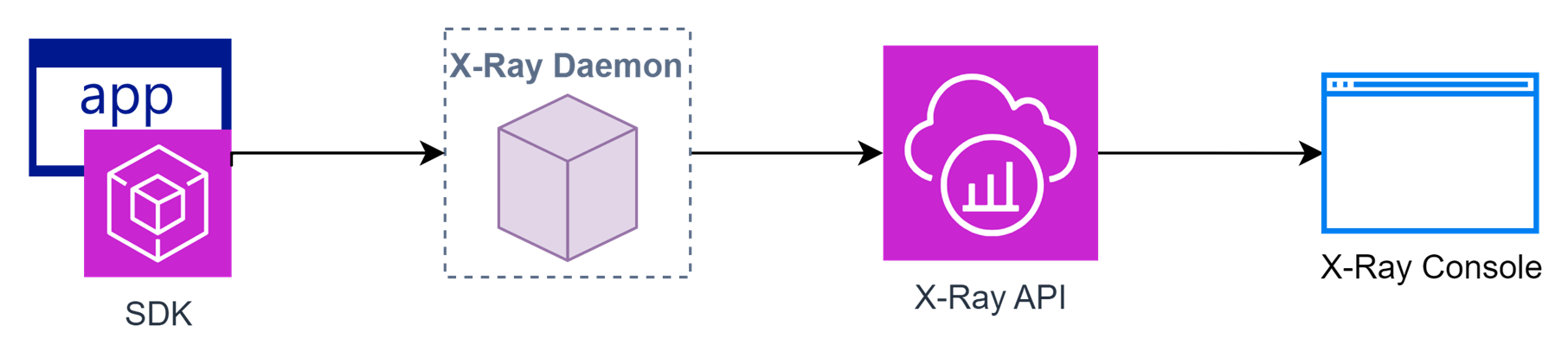 X-Ray를 사용하려면 각 서비스에서 X-Ray Daemon을 실행해야 하며, X-Ray SDK와 연동하여 X-Ray 서비스로 데이터를 전송한다.