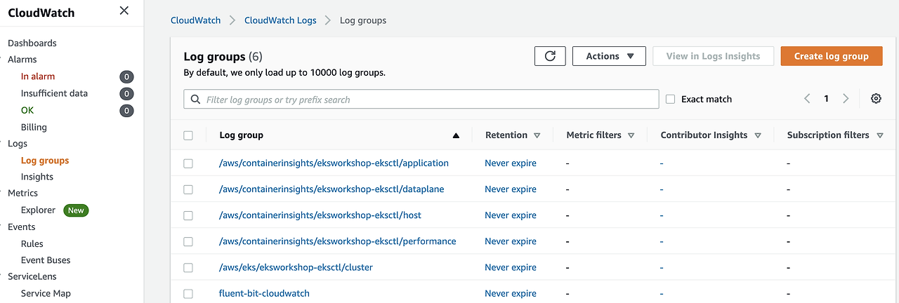 - Log Groups: 로그 데이터를 하나의 그룹으로 묶어 관리하기 위한 컨테이너