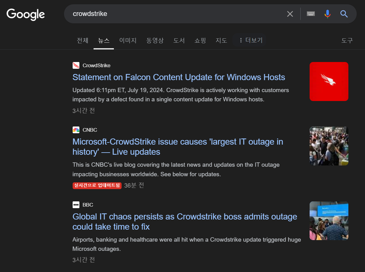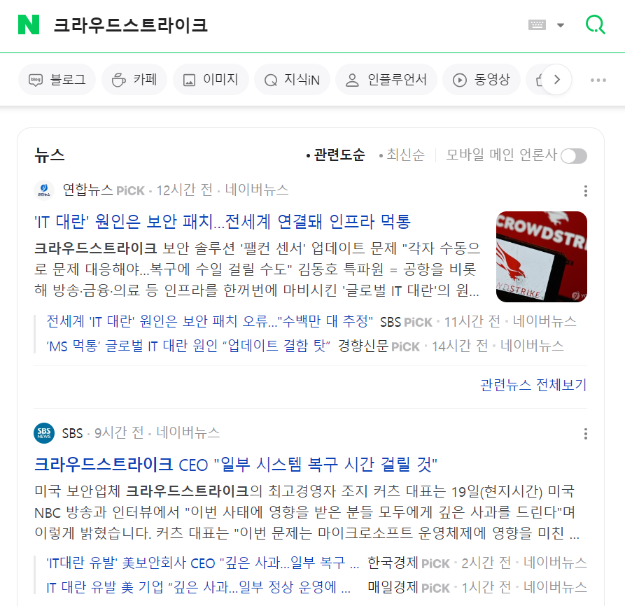 2024년 7월 19일 오후에 크라우드스트라이크(CrowdStrike)의 팔콘(Falcon) 센서라는 서비스가 문제를 일으켜 전 세계적으로 IT 대란을 초래했다.