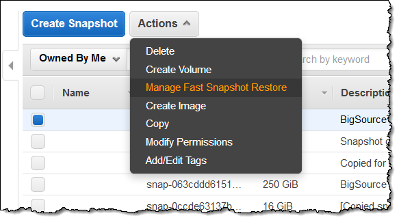 After you enable fast snapshot restore for a snapshot, it enters the optimizing state. Snapshots that are in the optimizing state provide some performance benefits when using them to restore volumes. They start to provide the full performance benefits of f