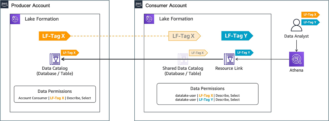 - LF 태그는 하위 리소스에 자동 상속 (예: 데이터베이스에 부여 → 해당 데이터베이스 아래 모든 테이블에 자동 적용)