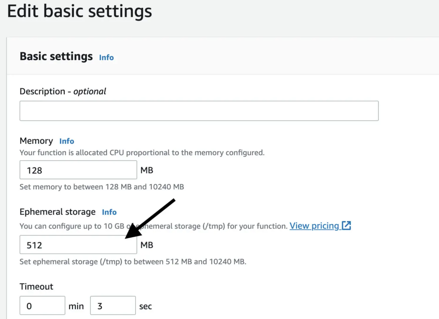 공식 문서: https://docs.aws.amazon.com/lambda/latest/api/API_EphemeralStorage.html
