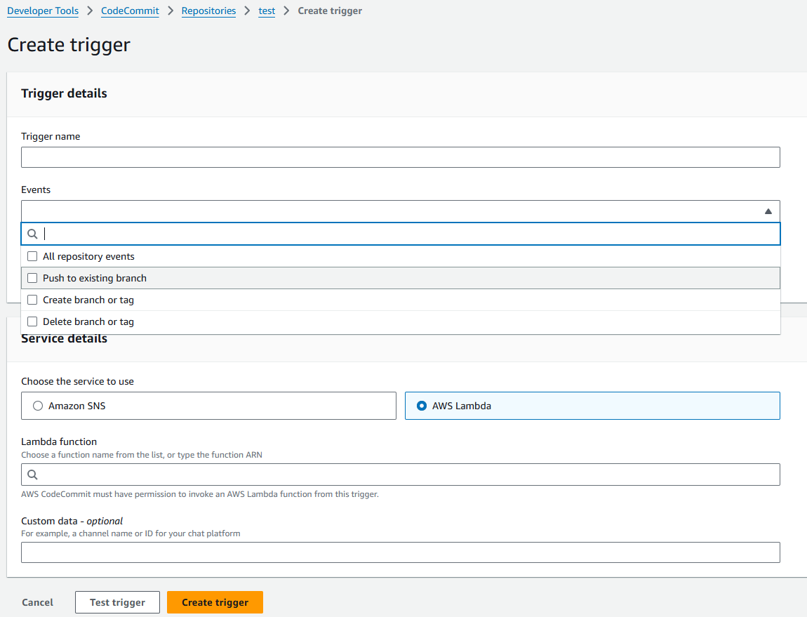 참고만) CodeCommit 자체 기능의 trigger 설정하기