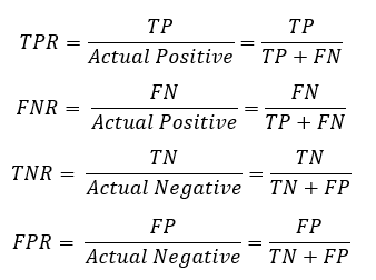 - True Negative Rate (TNR) = 50 / (50 + 10) = 0.8333