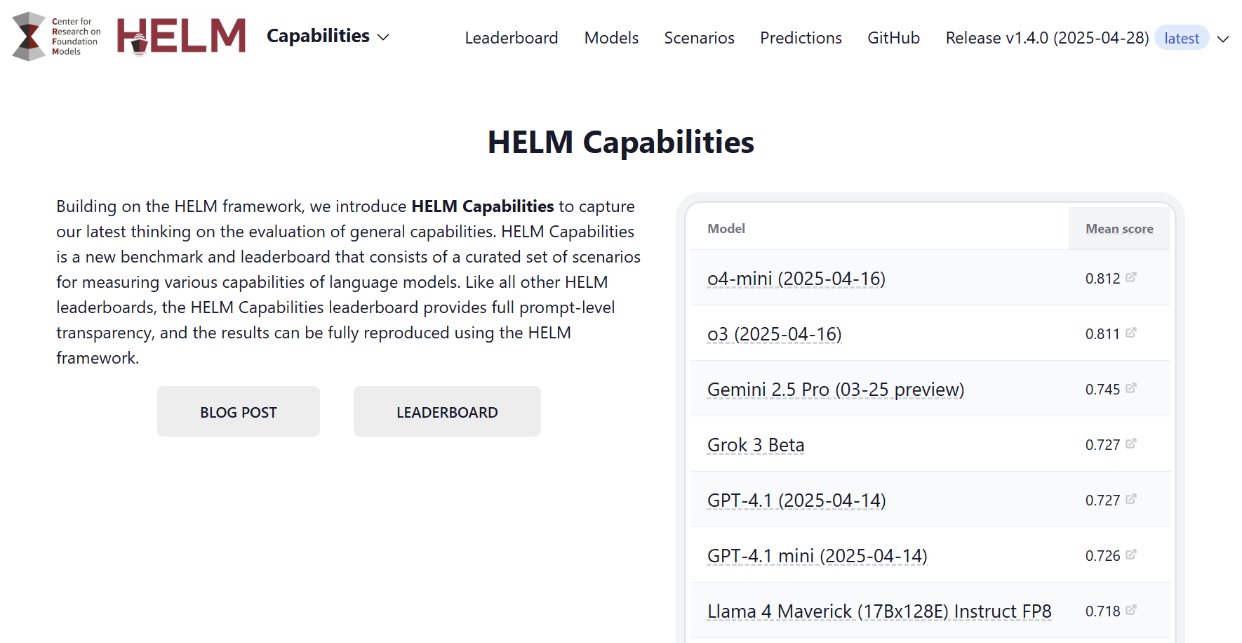 예시: "HELM Benchmark" (Stanford Center for Research on Foundation Models)