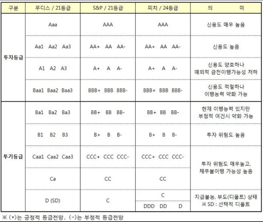 (신용평가회사 Big 3 => S&P, Moody's, Fitch)