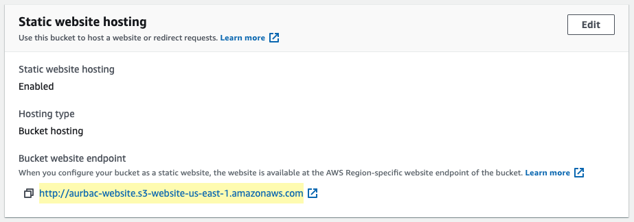 (예: http://my-website-bucket.s3-website-us-east-1.amazonaws.com)