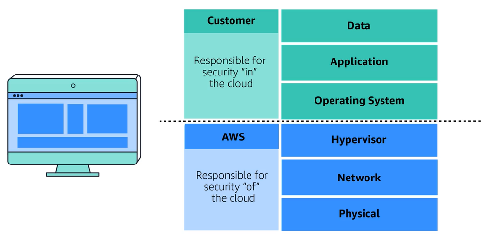- AWS 클라우드를 사용해서 만든 모든 것의 보안은 고객이 책임진다.