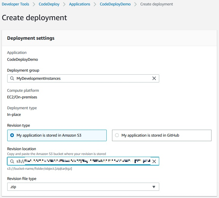 - 번들을 Amazon S3 버킷에 업로드하고, AWS CodeDeploy를 사용할 때 S3 위치를 지정하여 배포합니다.