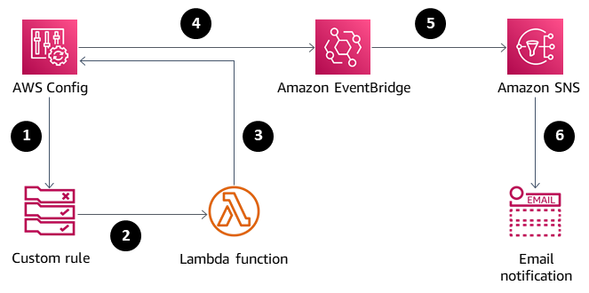 규칙을 준수하지 않는 리소스가 있을 경우 알림을 받으려면 Amazon EventBridge와 연동해야한다.