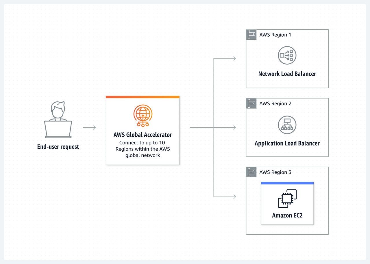 Global Accelerator는 사용자의 요청을 최적의 엔드포인트(i.ei. AWS 리전의 특정 인스턴스)로 라우팅한다.