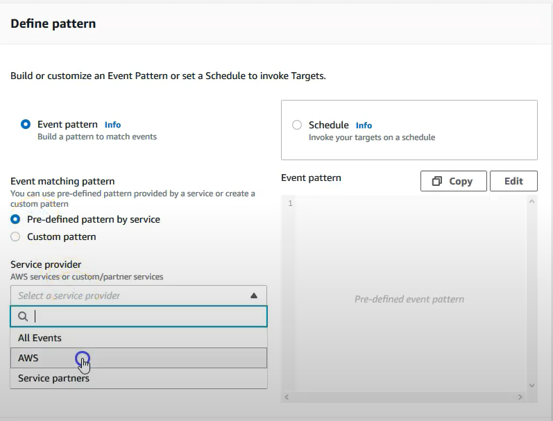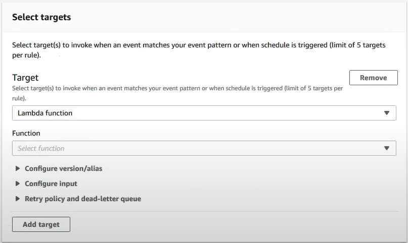 Target 예시) Lambda, SNS, SQS, Kinesis Data Streams, Kinesis Data Firehose, Step Functions